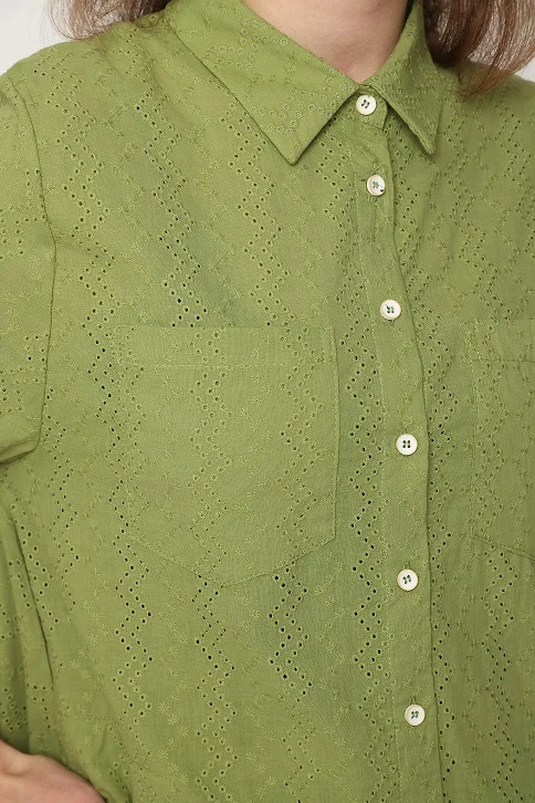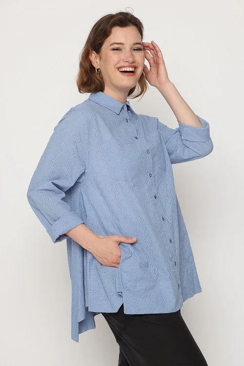 חולצת טוניקה כפתורים מבד כותנה דק